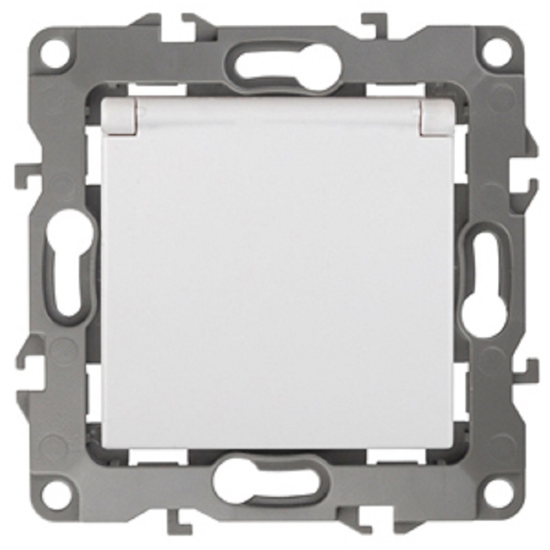Розетка с заземлением без рамки Эра S12 1-м крышка шторки 16А белый картинка