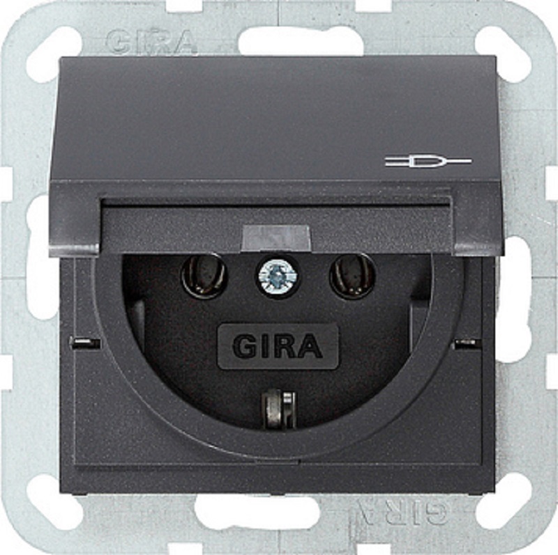 Розетка с заземлением без рамки Gira System55 1-м. крышка 16А антрацит картинка