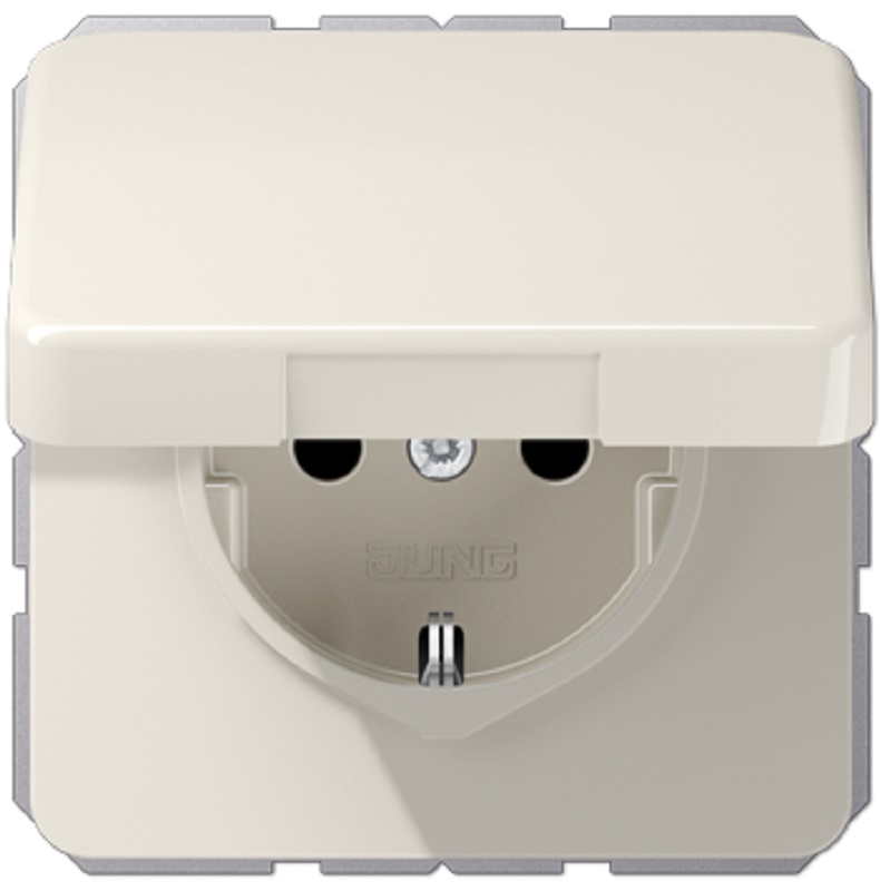 Розетка с заземлением без рамки Jung CD500 1-м. крышка шторки для IP44 слоновая кость