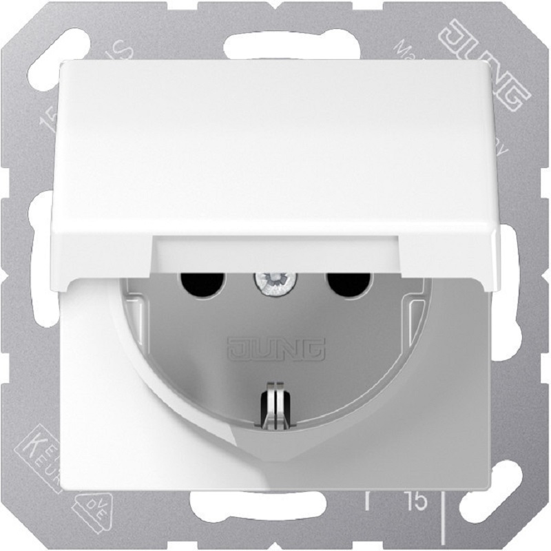 Розетка с заземлением без рамки Jung EcoProfi 1-м. крышка белый картинка