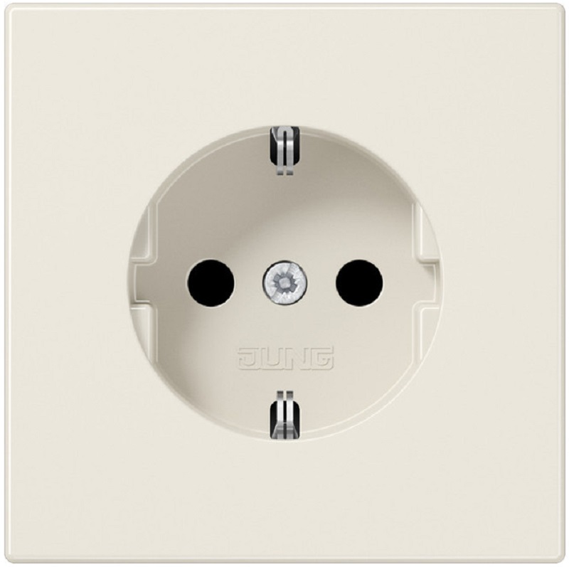 Розетка с заземлением без рамки Jung LS990 1-м. шторки бежевый картинка