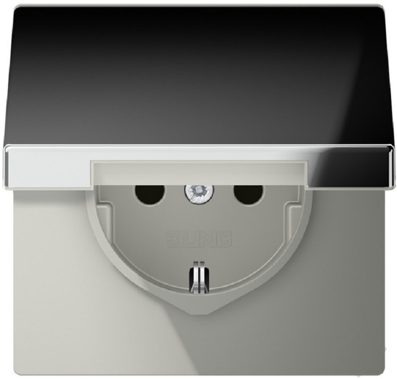Розетка с заземлением без рамки Jung LS990 metal 1-м. крышка шторки для IP44 хром картинка