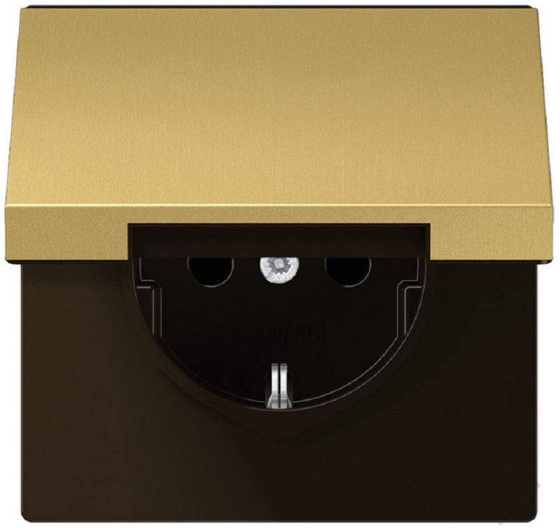 Розетка с заземлением без рамки Jung LS990 metal 1-м. крышка шторки для IP44 латунь картинка