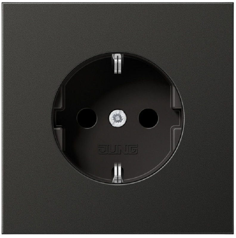 Розетка с заземлением без рамки Jung LS990 metal 1-м. шторки антрацит картинка