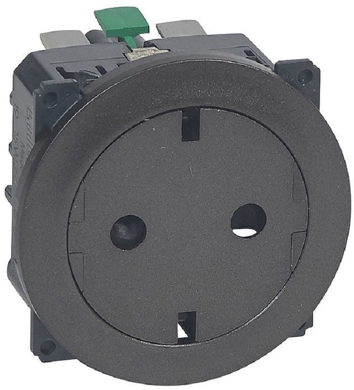 Розетка с заземлением без рамки Legrand Celiane 1-м. плоская шторки графит
