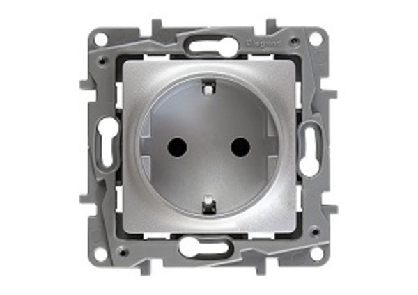 Розетка с заземлением без рамки Legrand Etika 1-м. шторки алюминий картинка фото 2