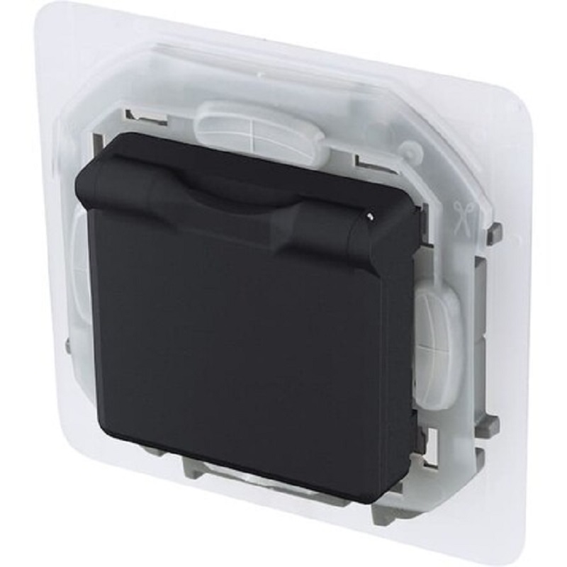 Розетка с заземлением без рамки Legrand Inspiria 1-м. крышка шторки IP44 антрацит картинка