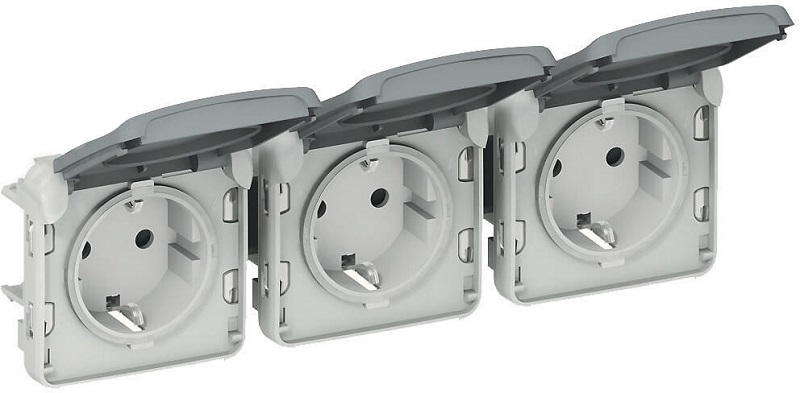 Розетка с заземлением без рамки Legrand Plexo 3-м. крышка шторки IP55 серый