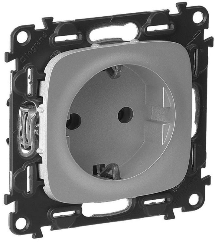 Розетка с заземлением без рамки Legrand Valena Allure 1-м. шторки алюминий картинка