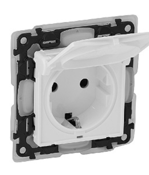 Розетка с заземлением без рамки Legrand Valena Life 1-м. крышка шторки IP44 белый