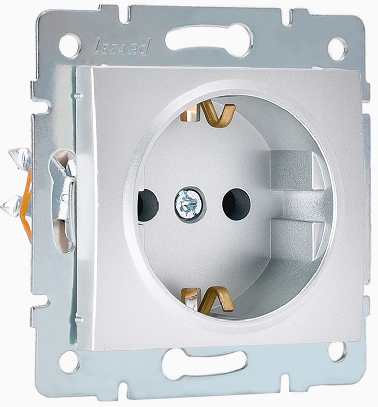 Розетка с заземлением без рамки Lezard Karina 1-м. керамика матовое серебро картинка