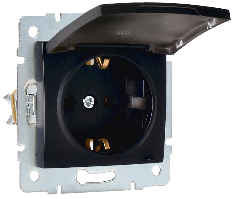 Розетка с заземлением без рамки Lezard Karina 1-м. крышка шторки черный бархат