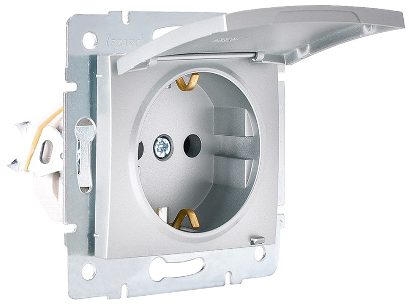 Розетка с заземлением без рамки Lezard Karina 1-м. крышка шторки керамика матовое серебро