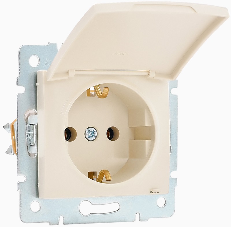 Розетка с заземлением без рамки Lezard Karina 1-м. крышка шторки кремовый