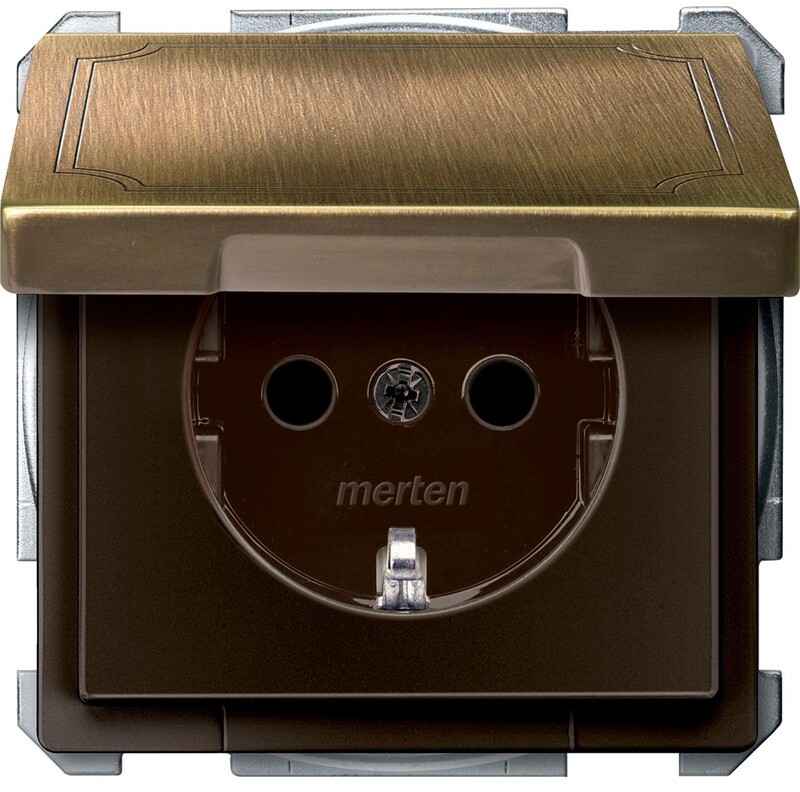 Розетка с заземлением без рамки Schneider Electric Merten Antique 1-м. крышка шторки античная латунь картинка
