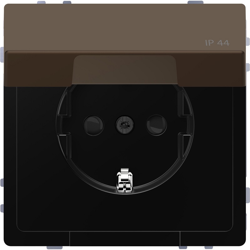 Розетка с заземлением без рамки Schneider Electric Merten D-Life 1-м. крышка шторки IP44 мокко