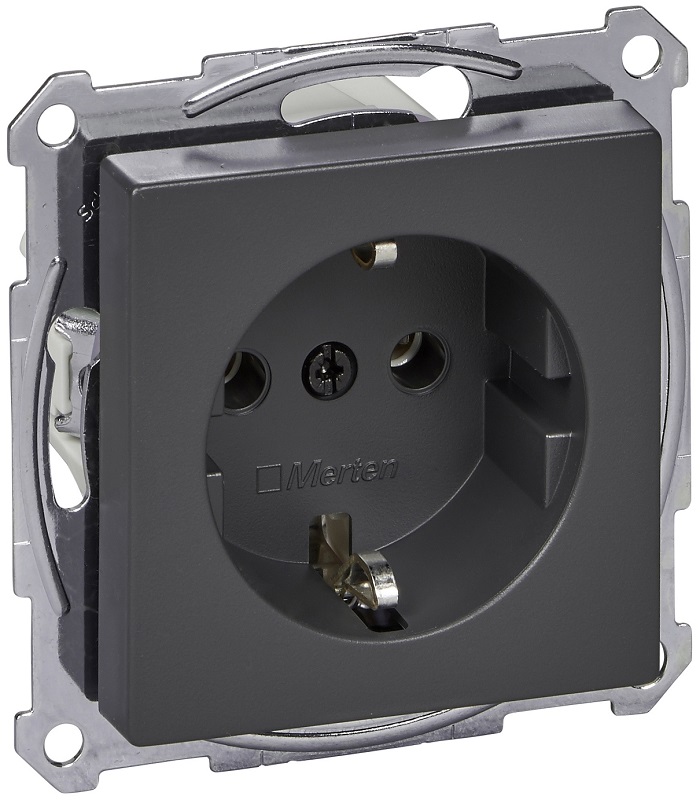 Розетка с заземлением без рамки Schneider Electric Merten System M 1-м. шторки антрацит
