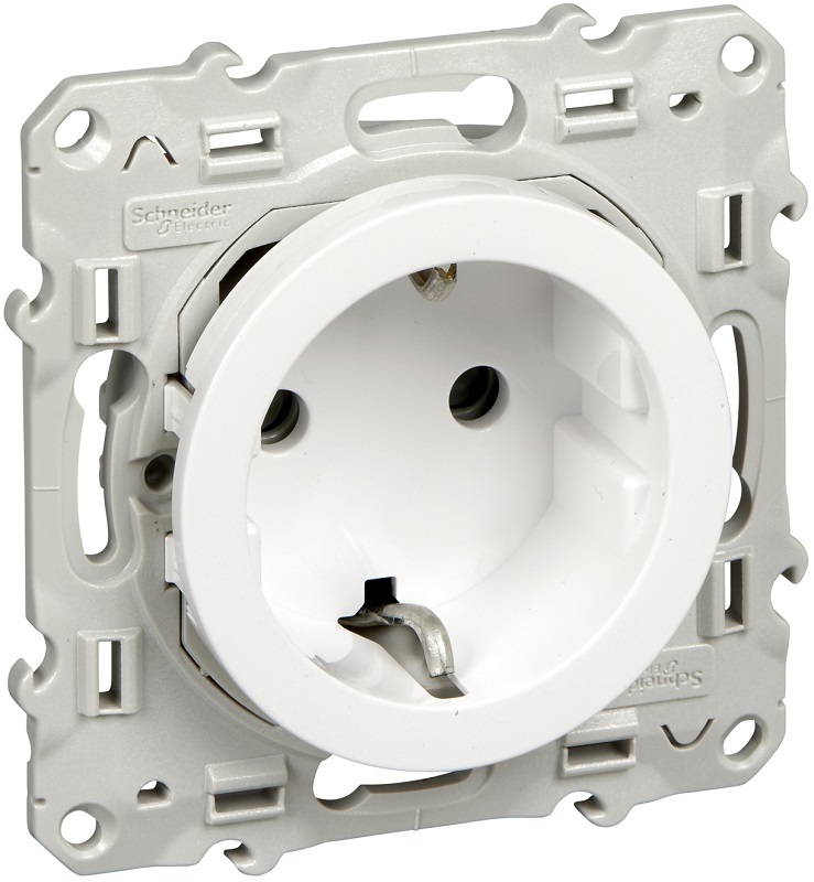 Розетка с заземлением без рамки Schneider Electric Odace 1-м. шторки белый