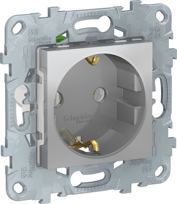 Розетка с заземлением без рамки Schneider Electric Unica New 1-м. алюминий