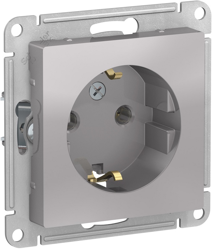 Розетка с заземлением без рамки Systeme Electric AtlasDesign 1-м. алюминий