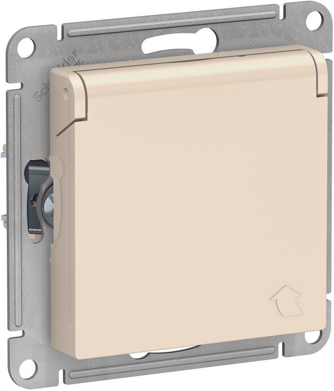 Розетка с заземлением без рамки Systeme Electric AtlasDesign 1-м. крышка шторки бежевый
