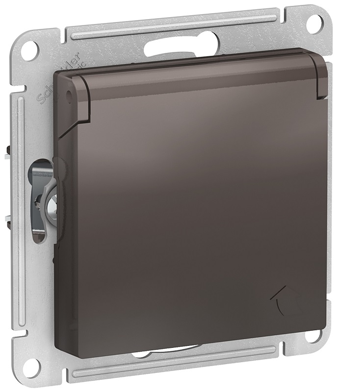 Розетка с заземлением без рамки Systeme Electric AtlasDesign 1-м. крышка шторки мокко