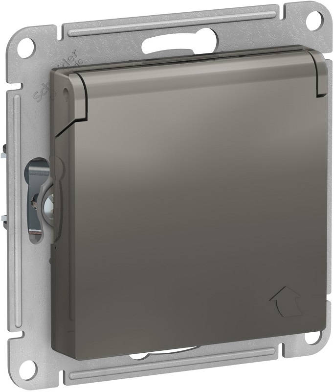 Розетка с заземлением без рамки Systeme Electric AtlasDesign 1-м. крышка шторки сталь картинка