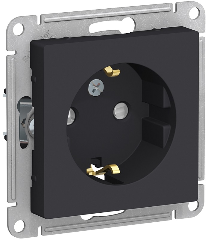 Розетка с заземлением без рамки Systeme Electric AtlasDesign 1-м. шторки карбон картинка фото 2