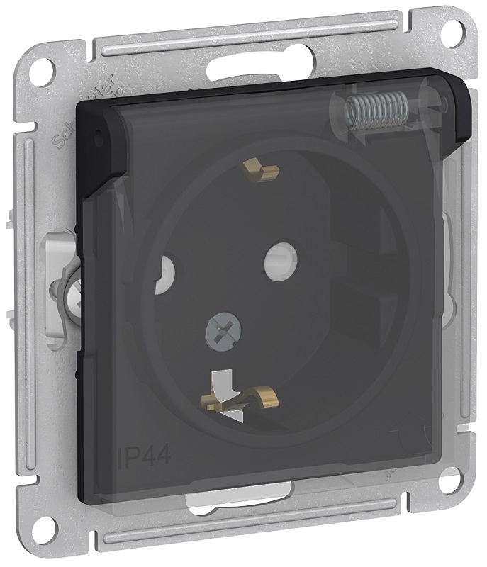 Розетка с заземлением без рамки Systeme Electric AtlasDesign Aqua 1-м. крышка шторки IP44 карбон
