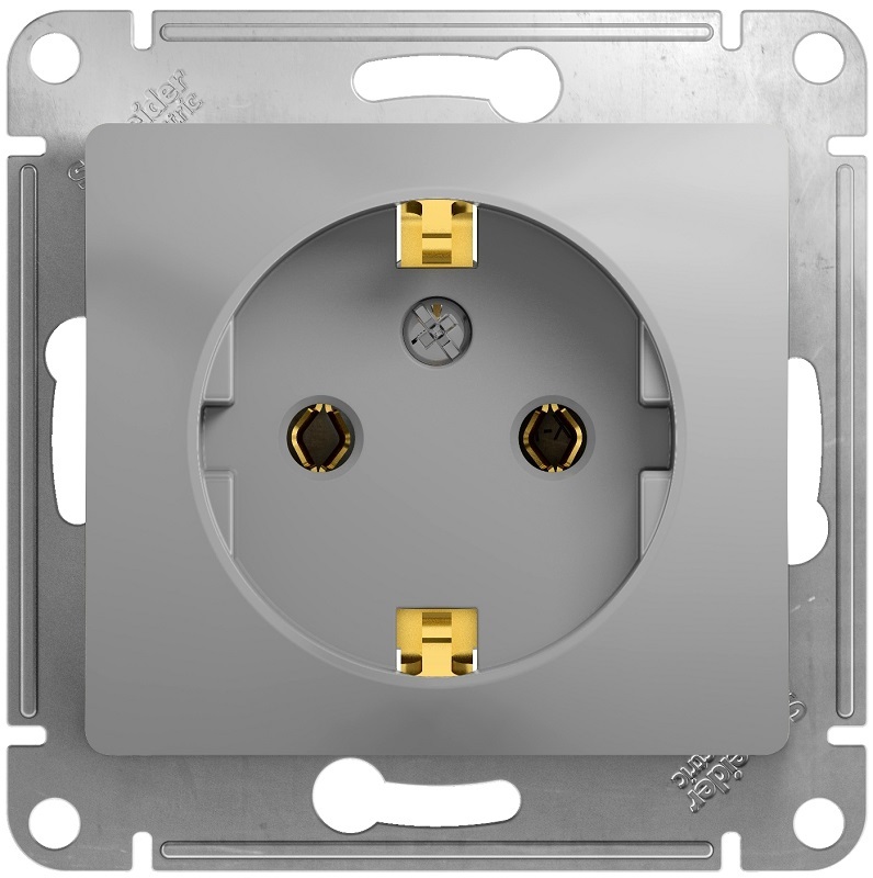 Розетка с заземлением без рамки Systeme Electric Glossa 1-м. алюминий