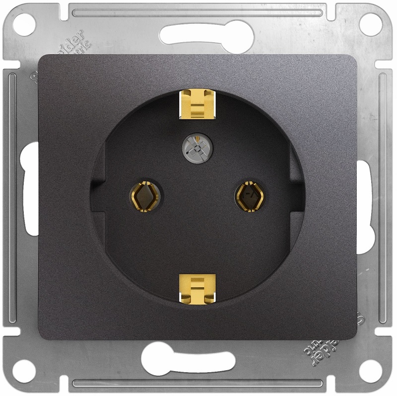 Розетка с заземлением без рамки Systeme Electric Glossa 1-м. графит картинка