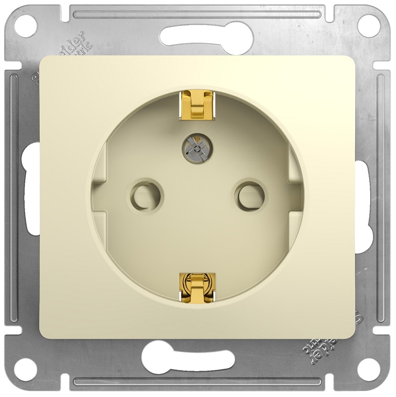 Розетка с заземлением без рамки Systeme Electric Glossa 1-м. шторки бежевый картинка
