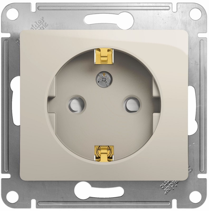Розетка с заземлением без рамки Systeme Electric Glossa 1-м. шторки молочный картинка