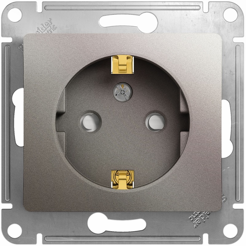 Розетка с заземлением без рамки Systeme Electric Glossa 1-м. шторки платина картинка