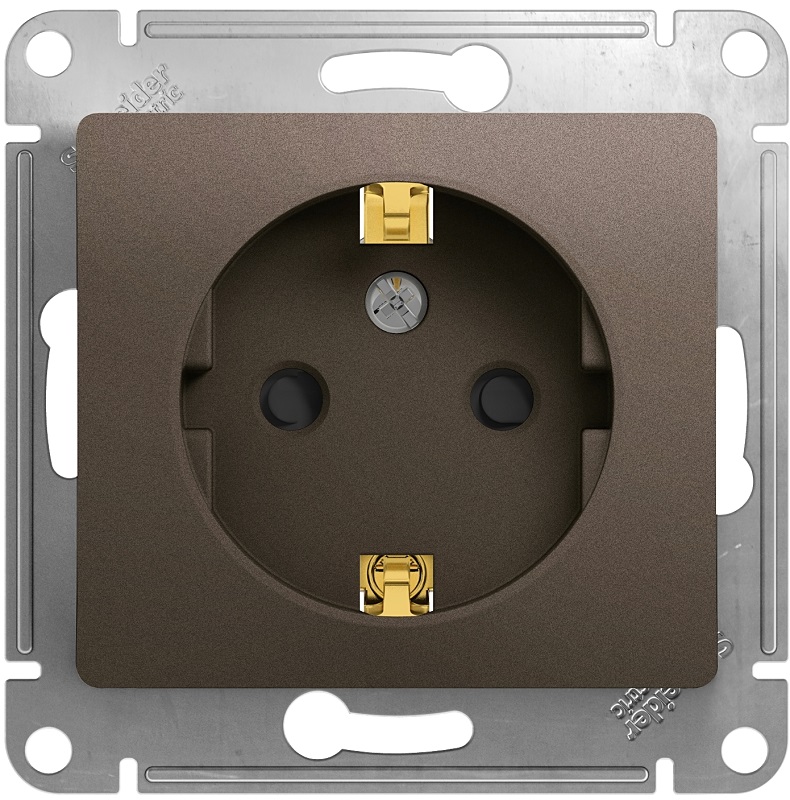 Розетка с заземлением без рамки Systeme Electric Glossa 1-м. шторки шоколад