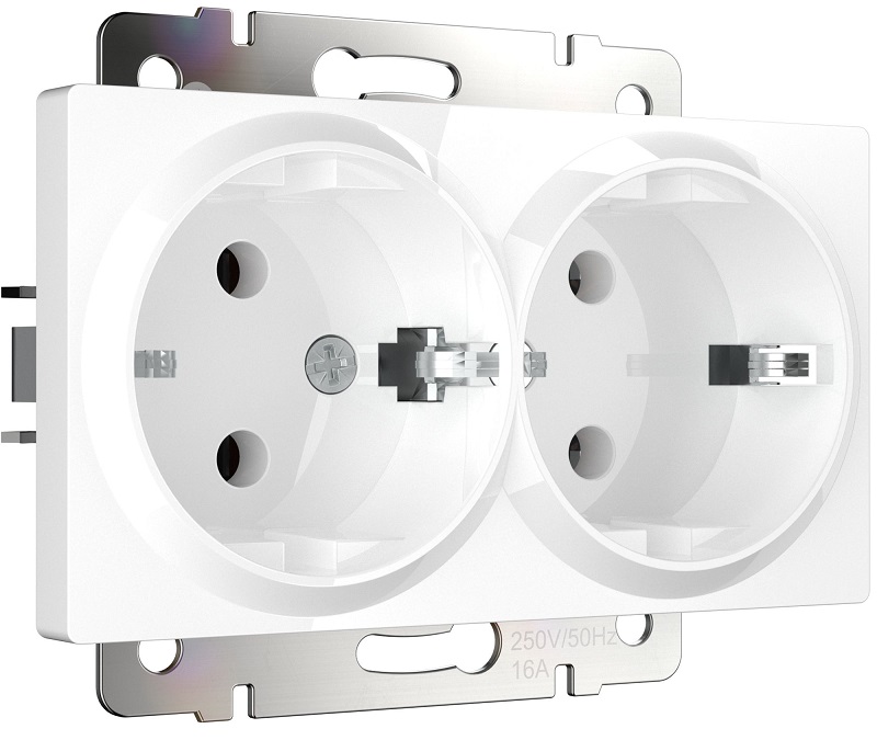 Розетка с заземлением без рамки Werkel 1-м. 2-мод. белый глянцевый