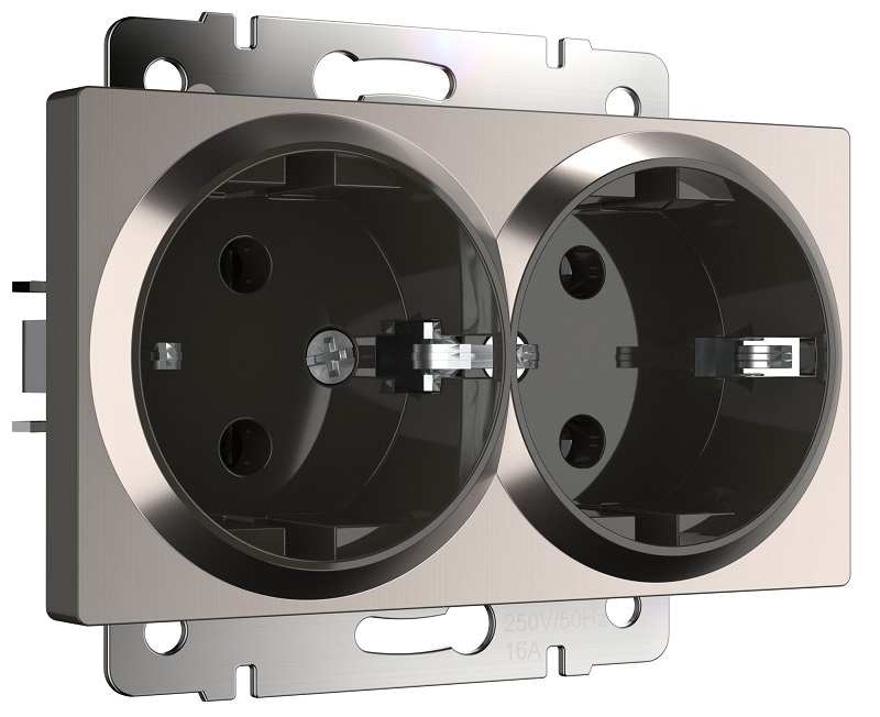 Розетка с заземлением без рамки Werkel 1-м. 2-мод. глянцевый никель