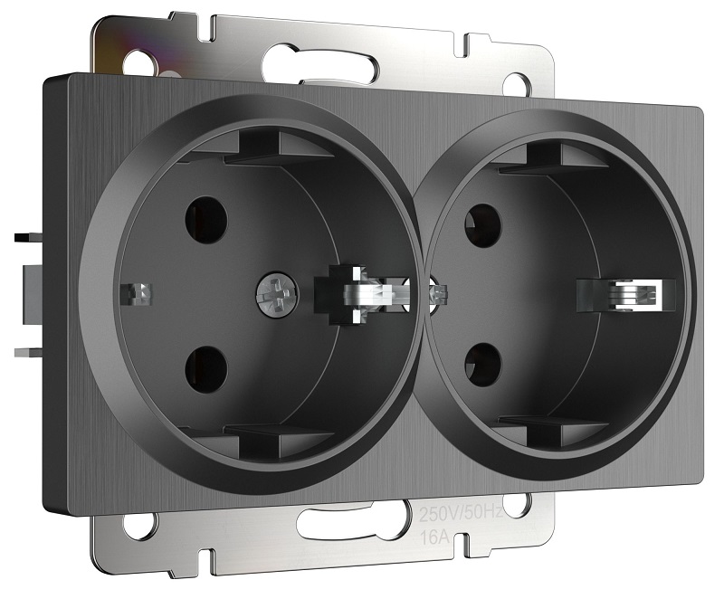 Розетка с заземлением без рамки Werkel 1-м. 2-мод. графит рифленый