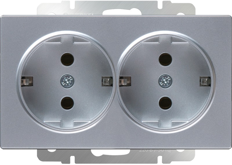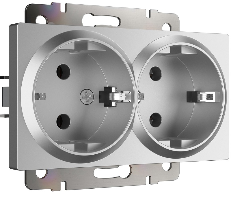 Розетка с заземлением без рамки Werkel 1-м. 2-мод. серебряный глянцевый