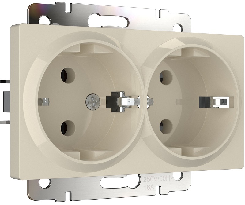 Розетка с заземлением без рамки Werkel 1-м. 2-мод. слоновая кость глянцевый