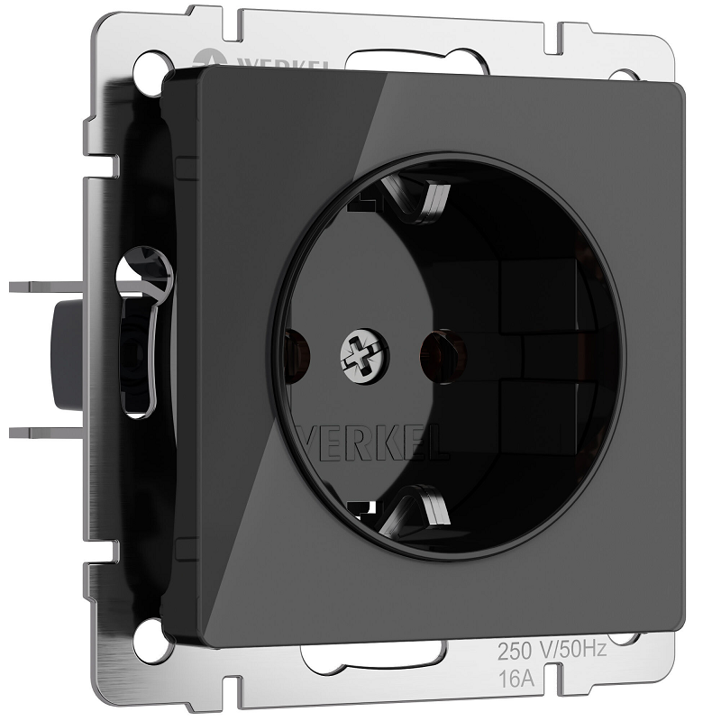 Розетка с заземлением без рамки Werkel 1-м. черный акрил