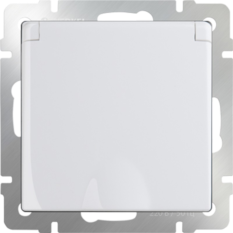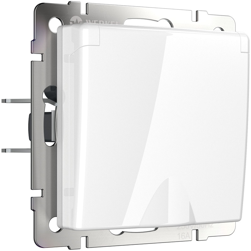 Розетка с заземлением без рамки Werkel 1-м. крышка шторки IP44 белый глянцевый