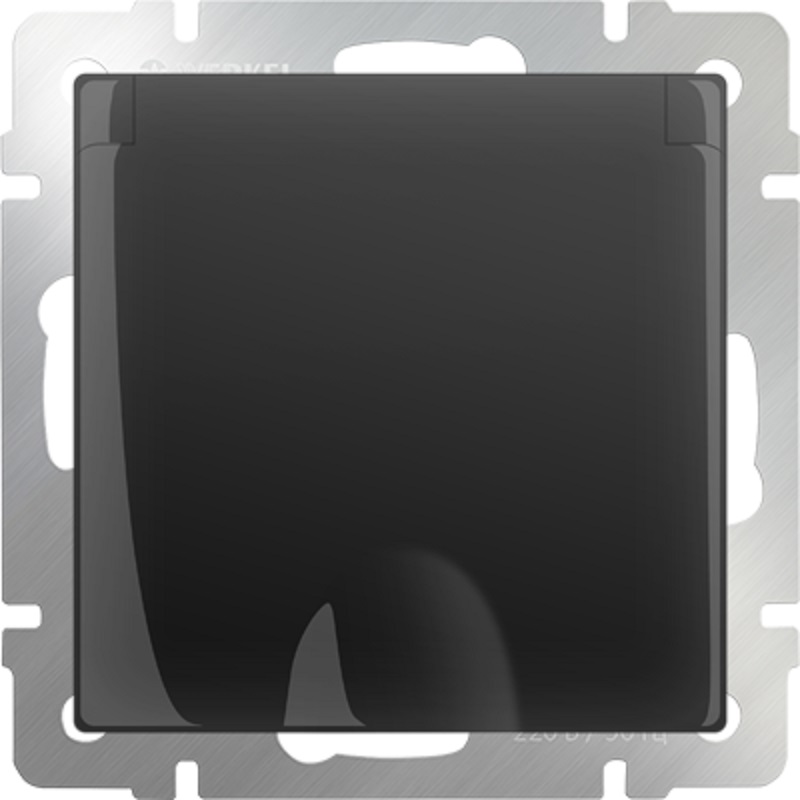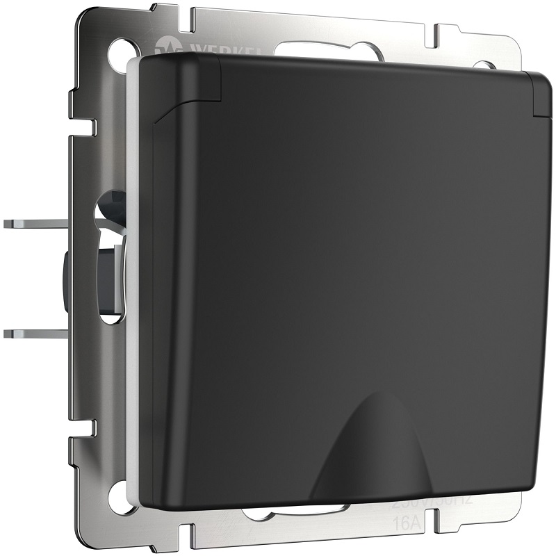 Розетка с заземлением без рамки Werkel 1-м. крышка шторки IP44 черный матовый