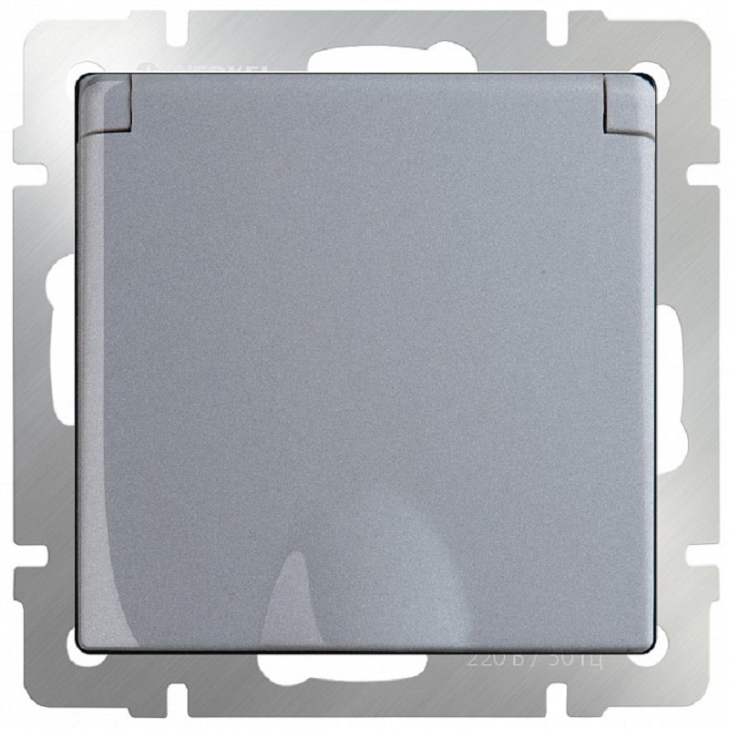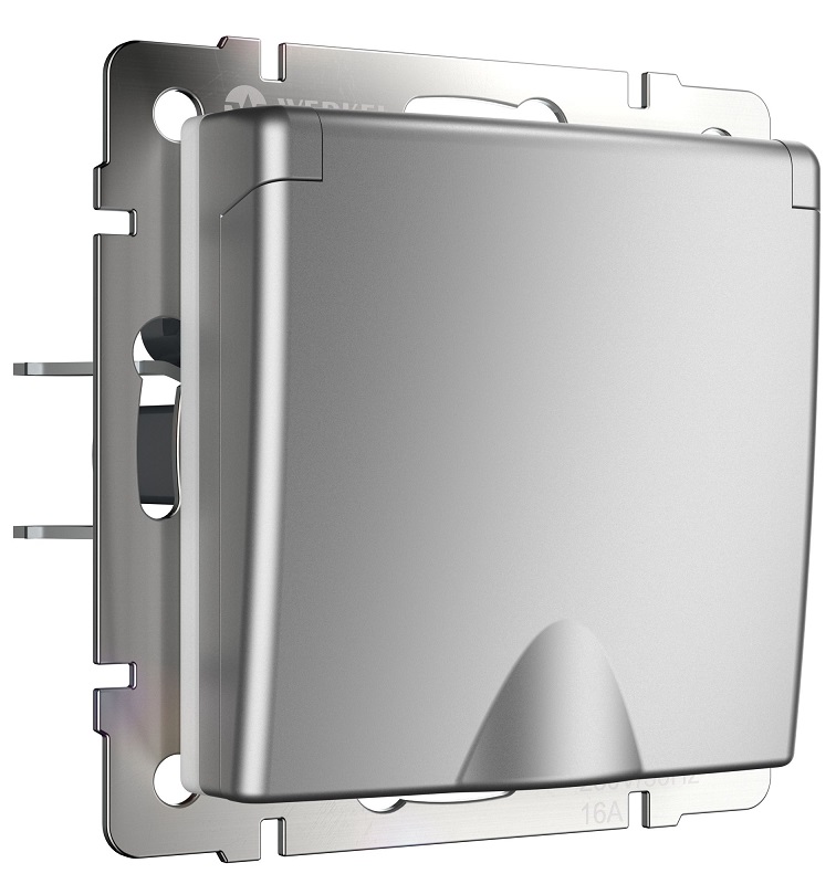 Розетка с заземлением без рамки Werkel 1-м. крышка шторки IP44 серебряный глянцевый