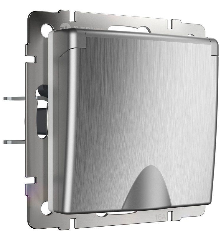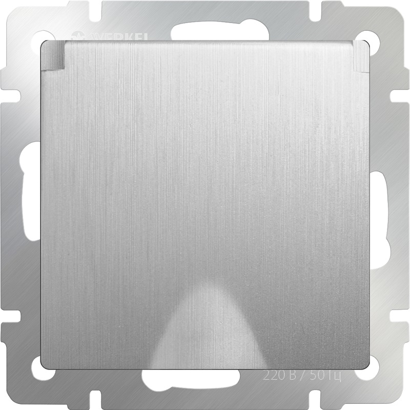 Розетка с заземлением без рамки Werkel 1-м. крышка шторки IP44 серебряный рифленый