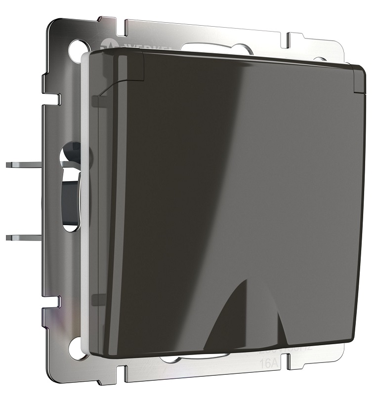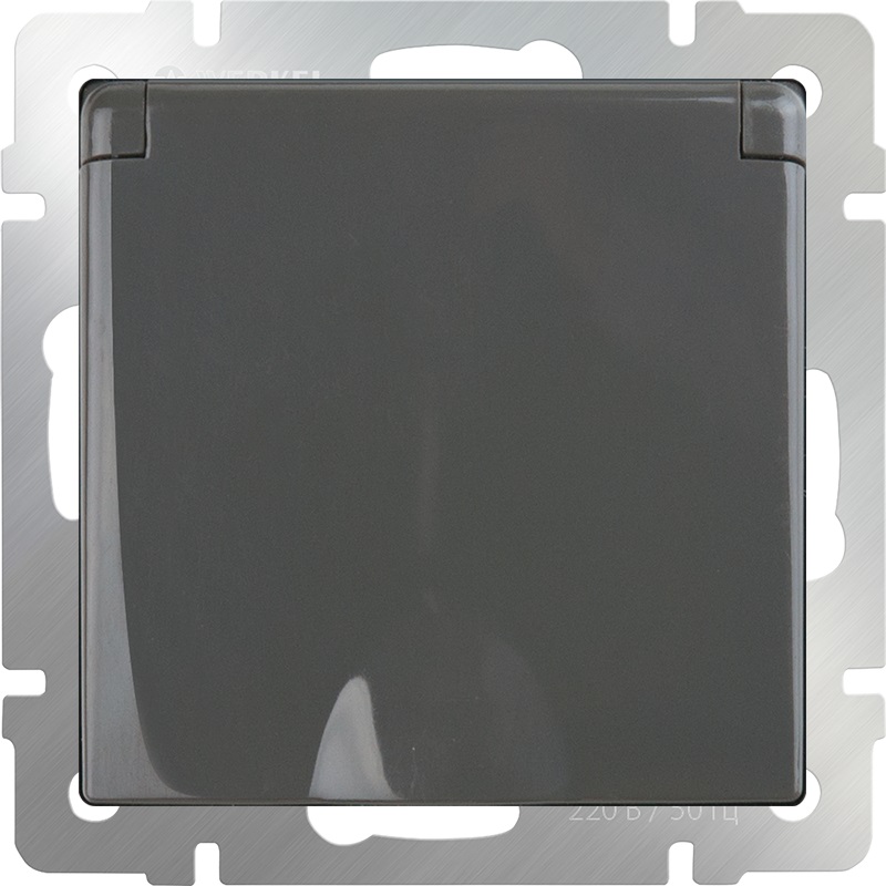 Розетка с заземлением без рамки Werkel 1-м. крышка шторки IP44 серо-коричневый глянцевый