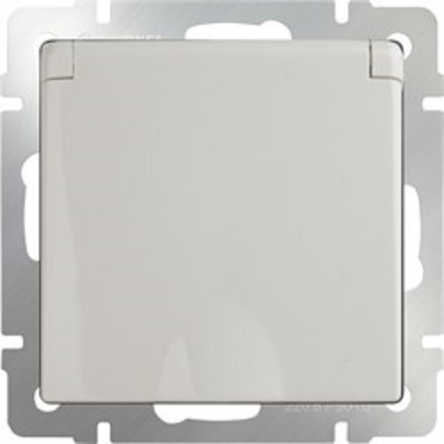 Розетка с заземлением без рамки Werkel 1-м. крышка шторки IP44 слоновая кость глянцевый