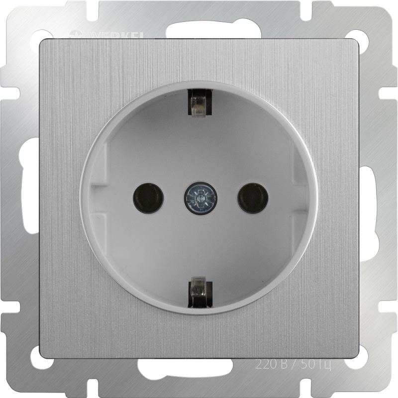Розетка с заземлением без рамки Werkel 1-м. шторки серебряный рифленый