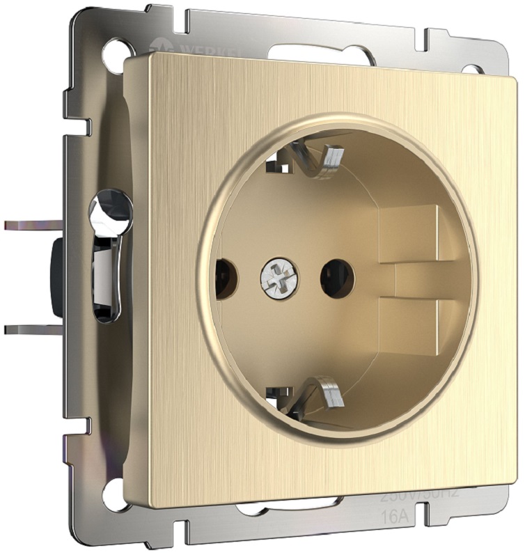 Розетка с заземлением без рамки Werkel 1-м. шторки шампань рифленый