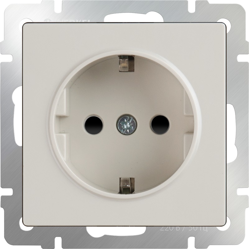 Розетка с заземлением без рамки Werkel 1-м. шторки слоновая кость глянцевый